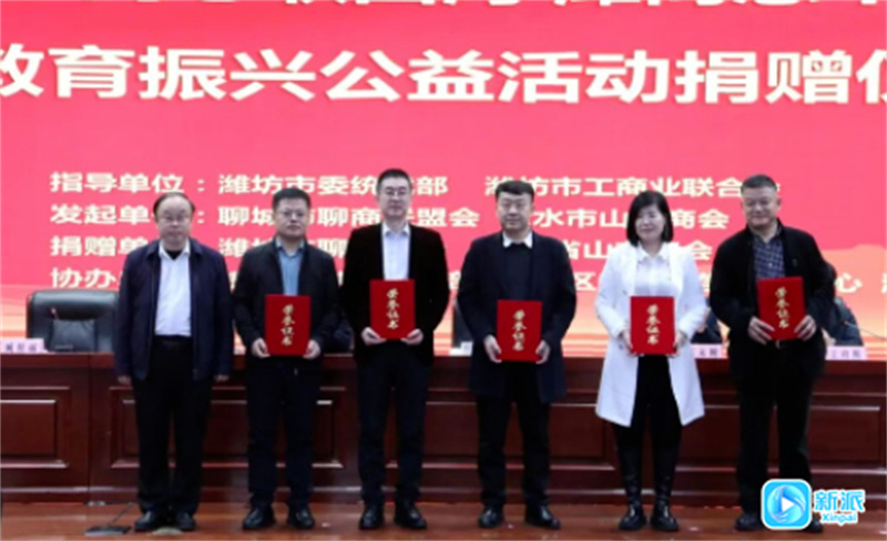 新派訊 近日,濰坊市“同心聯四海·濰商惠千校”助力教育振興公益活動舉辦。市委統戰部、市工商聯和有關縣市區負責同志及有關商會負責人共同出席捐贈儀式。