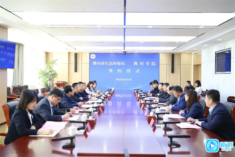新派訊 11月13日,濰坊市生態(tài)環(huán)境局與濰坊學(xué)院全面合作框架協(xié)議簽署儀式在濰坊學(xué)院行政樓舉行。